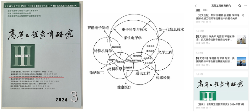 近日,我院朱先軍副教授、劉蕾蕾教授、郭艷東副教授和許吉副教授等人,在國(guó)內(nèi)工程教育研究權(quán)威期刊《高等工程教育研究》上發(fā)表題為《交叉融合性新專業(yè)柔性電子學(xué)的課程體系建設(shè)》的教學(xué)改革研究論文。論文闡述了柔性電子學(xué)專業(yè)多學(xué)科交叉融合性的特點(diǎn),著重介紹了我院在面向交叉融合的前沿學(xué)科需求,以學(xué)生為中心,以產(chǎn)業(yè)需求為導(dǎo)向、突出多學(xué)科交叉融合的特點(diǎn)、引入前沿技術(shù)進(jìn)行柔性電子人才培養(yǎng)的課程體系構(gòu)建和優(yōu)化的思路,重點(diǎn)介紹了專業(yè)核心課程的特色和實(shí)踐教學(xué)環(huán)節(jié)設(shè)置,詳細(xì)介紹了傳統(tǒng)課程融合交叉學(xué)科特色的教學(xué)內(nèi)容改革。柔性電子學(xué)是面向國(guó)家重大戰(zhàn)略需求的跨學(xué)科交叉融合領(lǐng)域設(shè)立的新專業(yè),我校于2021年向教育部申報(bào)設(shè)立柔性電子學(xué)專業(yè)并成功獲批,于2022年9月招收第一屆本科生。我院柔性電子學(xué)專業(yè)師資隊(duì)伍建設(shè)、課程體系建設(shè)和學(xué)科發(fā)展等如火如荼的開(kāi)展,并取得了良好實(shí)效。柔性電子學(xué)專業(yè)課程體系建設(shè)相關(guān)研究受到了《高等工程教育研究》期刊編委的青睞,刊發(fā)在2024年第3期“新工科研究與實(shí)踐”專欄,并作為選文在其公眾號(hào)上推廣,受到了國(guó)內(nèi)高等教育界學(xué)者們關(guān)注。該教學(xué)研究成果得到南京郵電大學(xué)本科教改項(xiàng)目和江蘇省高等教育教學(xué)改革研究項(xiàng)目