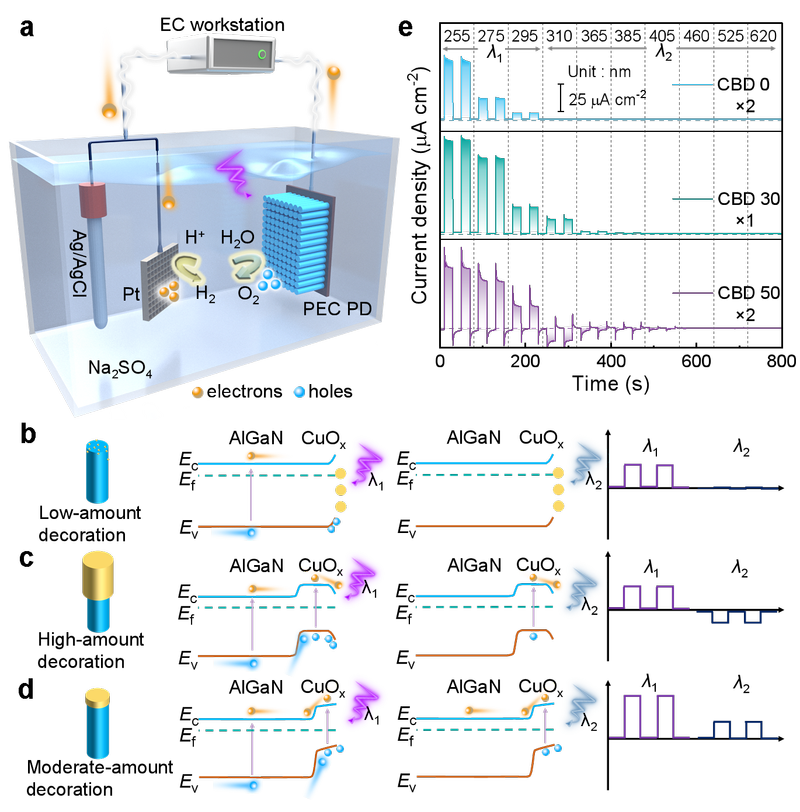 近日,我院GaN-X Lab課題組在氮化鎵基紫光探測(cè)領(lǐng)域取得重要研究進(jìn)展,通過(guò)構(gòu)建II型AlGaN/CuOx異質(zhì)結(jié),利用...