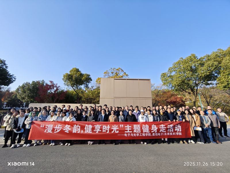 為迎接學(xué)院黨代會(huì)勝利召開(kāi),讓全體教職工在自然中放松身心、在運(yùn)動(dòng)中凝聚力量,11月26日下午,電子與光學(xué)工程學(xué)院、柔性電子(未來(lái)技術(shù))學(xué)院工會(huì)精心策劃“漫步冬韻,健享時(shí)光”主題健身走活動(dòng),組織全院教師走進(jìn)羊山公園,共赴一場(chǎng)冬日美景與健康活力的雙向之約。下午三點(diǎn),參與活動(dòng)的教師們齊聚公園入口廣場(chǎng),臉上洋溢著期待與喜悅。學(xué)院黨委書記黃麗亞致辭,她表示,此次健身走活動(dòng)既是響應(yīng)“全民健身”號(hào)召、關(guān)愛(ài)教職工身心健康的暖心舉措,也是學(xué)院以團(tuán)結(jié)奮進(jìn)風(fēng)貌迎接黨代會(huì)的生動(dòng)實(shí)踐。“希望大家在漫步中欣賞冬景、在同行中增進(jìn)情誼,把運(yùn)動(dòng)帶來(lái)的活力與激情,轉(zhuǎn)化為教書育人、干事創(chuàng)業(yè)的強(qiáng)大動(dòng)力,共同為學(xué)院高質(zhì)量發(fā)展蓄力賦能。”致辭結(jié)束后,教師們邁著矯健的步伐有序啟程,沿著蜿蜒的環(huán)湖步道展開(kāi)了一場(chǎng)與冬日的親密邂逅。活動(dòng)結(jié)束后,教師們?cè)诠珗@入口處集體合影。此次健身走活動(dòng)全程約5公里,路程雖不算長(zhǎng),卻讓老師們?cè)诜泵Φ墓ぷ髦啵叱隽诵@、走進(jìn)了自然,既鍛煉了身體、舒緩了壓力,更增進(jìn)了彼此間的溝通與情誼。電子與光學(xué)工程學(xué)院、柔性電子(未來(lái)技術(shù))學(xué)院工會(huì)未來(lái)將繼續(xù)聚焦教職工需求,秉持“服務(wù)教職工、凝聚向心力”的宗旨,組織更多形式